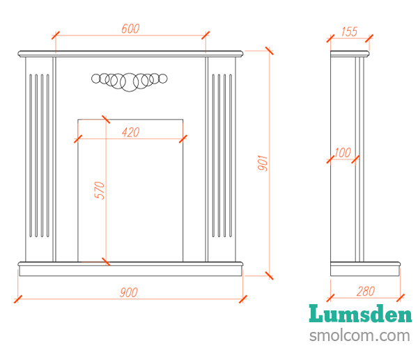 Размер выреза для установки электрокамина (ВxШxГ), мм: 570х420х133.