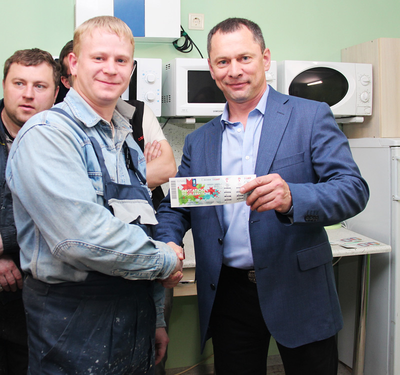 Весь апрель сотрудники производственного цеха, а также инженерно-технические работники соревновались в повышении производительности труда и соблюдении трудовой дисциплины, а 8 мая прошло торжественное награждение победителей. Заветные билеты на матчи чемпионата мира по хоккею получили лучшие представители производственного участка ООО «Смолком»!